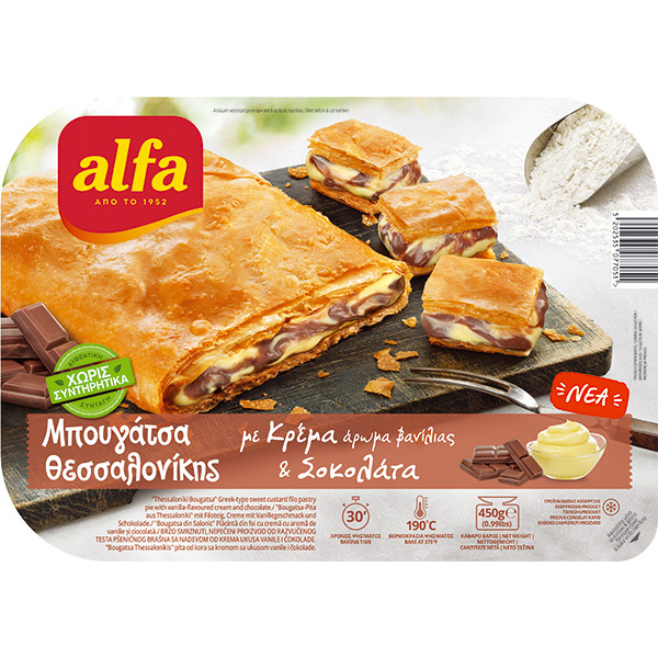 ΜΠΟΥΓΑΤΣΑ ΘΕΣΣΑΛΟΝΙΚΗΣ ΜΕ ΚΡΕΜΑ & ΣΟΚΟΛΑΤΑ 450 γρ 6 ΤΕΜ