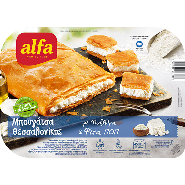 ΜΠΟΥΓΑΤΣΑ ΘΕΣΣΑΛΟΝΙΚΗΣ ΜΕ ΜΥΖΗΘΡΑ & ΦΕΤΑ 450 γρ 6 ΤΕΜ